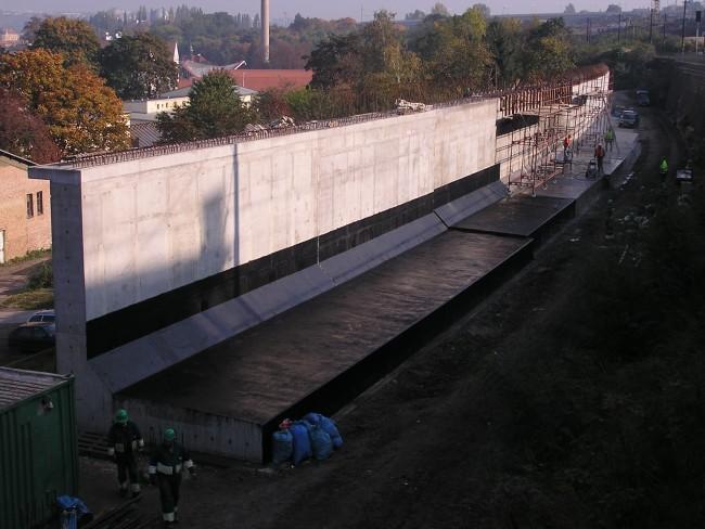 Popis: Izolace spodní části opěrné zdi pro rozšíření tělesa v oblasti Sluncová